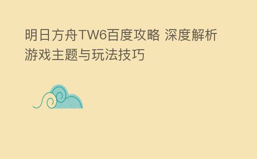 前言:随着《明日方舟》这款策略塔防游戏的持续更新,越来越多的玩家加入了这场危机四伏的罗德岛冒险。TW6作为游戏中的一个重要关卡,其难度和策略性让许多玩家望而却步。本文将围绕“明日方舟TW6百度”这一主题,为大家详细解析TW6的攻略和解决办法。