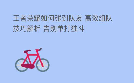 王者荣耀如何碰到队友 高效组队技巧解析 告别单打独斗