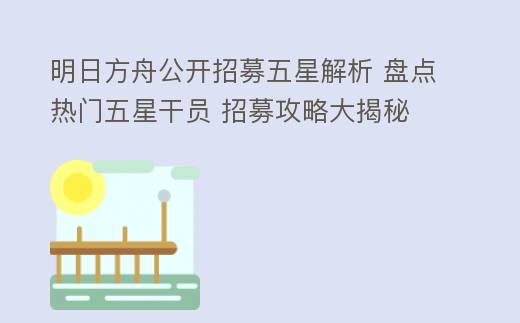 明日方舟公开招募五星相关搜索词:明日方舟五星招募攻略、明日方舟五星干员获取技巧、明日方舟五星招募技巧、明日方舟五星干员培养指南、明日方舟五星招募活动
