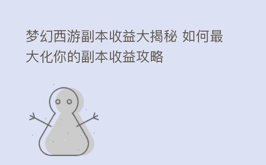 梦幻西游副本收益大揭秘 如何最大化你的副本收益攻略