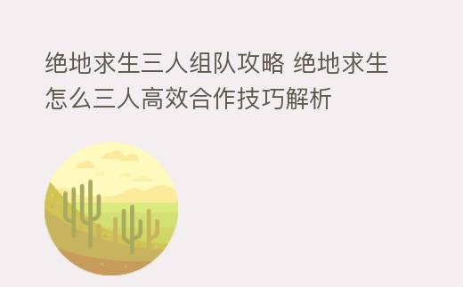 在《绝地求生》这款风靡全球的射击游戏中,组建一支默契的三人小队是进步生存率的关键。三人小队不仅可以分担物资收集、战斗和侦查的任务,还能在关键时刻互相支援,形成强大的战斗力。本文将为你详细介绍该该怎么办办在《绝地求生》中组建并运用三人小队,让你在游戏中如鱼得水。