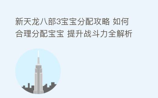 在《新天龙八部3》中,合理分配宝宝是提升战斗力的关键。通过了解宝宝属性、选择合适的宝宝、搭配技能、关注成长与培养,以及实战中的灵活调整,玩家可以打造出强大的宝宝阵容,在江湖中一路过关斩将。