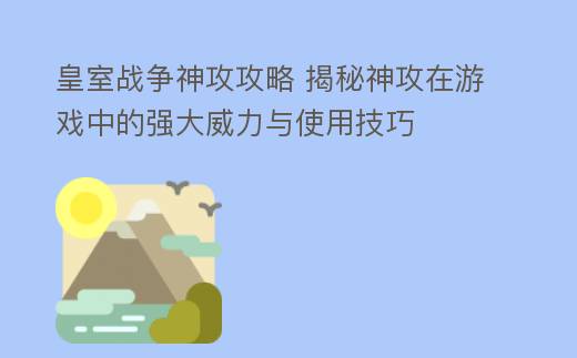文章标题:皇室战争神攻攻略:掌握核心技巧,轻松制胜战场
